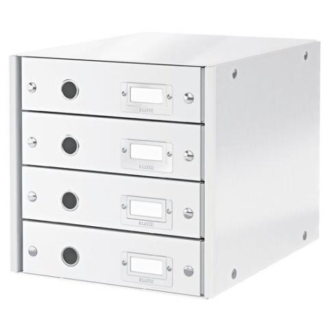 Irattároló, laminált karton, 4 fiókos, Leitz Click&Store, fehér fiókos irattároló 4 fiókkal, A4 méretű lapok tárolására összehajtható, így helytakarékosan tárolható fém kihúzólyuk a fiókok könnyű használatának érdekében címketartó a tartalom könnyű bea