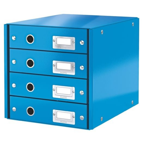 Irattároló, laminált karton, 4 fiókos, Leitz Click&Store, kék fiókos irattároló 4 fiókkal, A4 méretű lapok tárolására összehajtható, így helytakarékosan tárolható fém kihúzólyuk a fiókok könnyű használatának érdekében címketartó a tartalom könnyű beazo