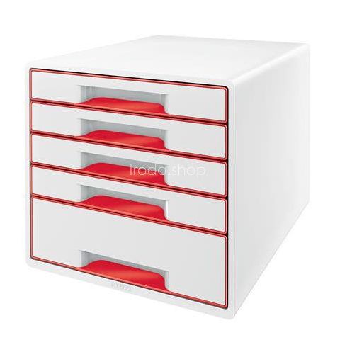 1 kép Leitz Irattároló, műanyag, 5 fiókos, LEITZ "Wow Cube", fehér/piros