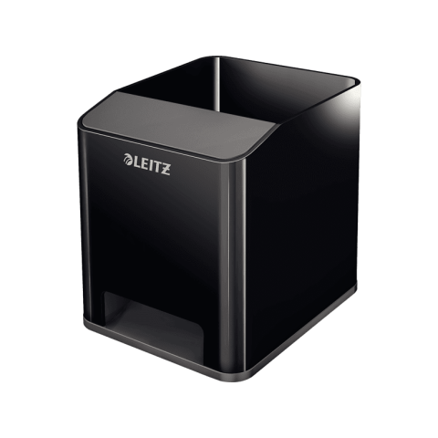 Ez a prémium minőségű tolltartó egyedi formatervezésének köszönhetően felerősíti a telefontartó rekeszre helyezett telefon hangját. Letisztult, minimalista design. Rendezd be íróasztalodat a fekete kollekció egyedi formatervezésű kiegészítőivel és mutasd meg környezetednek kifinomult stílusérzékedet! Jellemzők Tedd stílusossá íróasztalodat ezzel a kettős színhatású Leitz termékcsaláddal! Egyedülálló formatervezésű tolltartó - stílusos és helytakarék