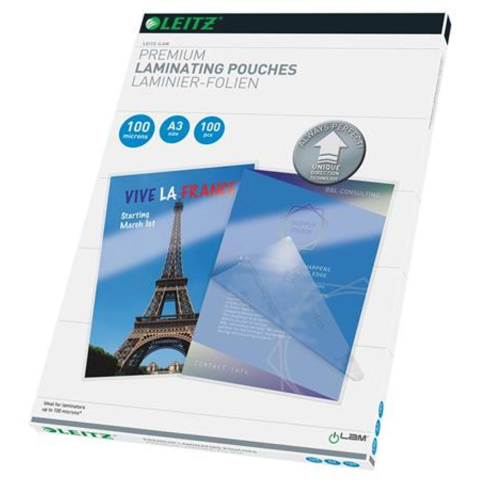 1 kép Leitz Meleglamináló fólia, 100mikron, A3, fényes, UDT technológiával, LEITZ "iLam", 100db/cs