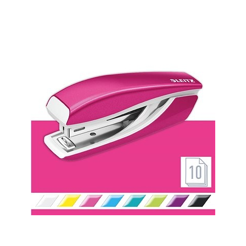 Irodai tűzőgép - asztali, zárt tűzés, felső újratöltés, 10 kapocsmérethez, tűzési kapacitás akár 10 lap, integrált tűzőgép, a kar nyílása 180°, anyaga fém, rózsaszín kivitel, mérete 3,9 × 3 × 10,1 cm (Ma×Sz×Mé), tömege 91 g A Leitz NeXXt 5528 metálrózsaszín tűzőgép nagyszerű segítőtárs adminisztratív munka közben, akár otthon, akár az irodában. Ahhoz, hogy mindenből a legtöbbet hozd ki, a megfelelő méretű kapcsokat kell