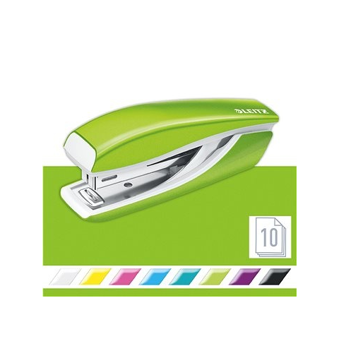 Irodai tűzőgép - asztali, zárt tűzés, felső újratöltés, 10 kapocsmérethez, tűzési kapacitás akár 10 lap, integrált tűzőgép, a kar nyílása 180°, anyaga fém, zöld kivitel, mérete 3,9 × 3 × 10,1 cm (Ma×Sz×Mé), tömege 91 g A Leitz NeXXt 5528 zöld színű tűzőgép nagyszerű segítőtárs adminisztratív munka közben, akár otthon, akár az irodában. Ahhoz, hogy mindenből a legtöbbet hozd ki, a megfelelő méretű kapcsokat kell kivá