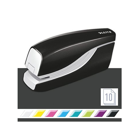 Irodai tűzőgép - elektromos és asztali, Leitz E1 kapocsmérethez, tűzési kapacitás akár 10 lap, fekete kivitel, mérete 7,1 × 4,4 × 15,3 cm (Ma×Sz×Mé), tömege 242 g A Leitz NeXXt WOW 5566 fekete színű tűzőgép nagyszerű segítőtárs adminisztratív munka közben, akár otthon, akár az irodában. Ahhoz, hogy mindenből a legtöbbet hozd ki, a megfelelő méretű kapcsokat kel