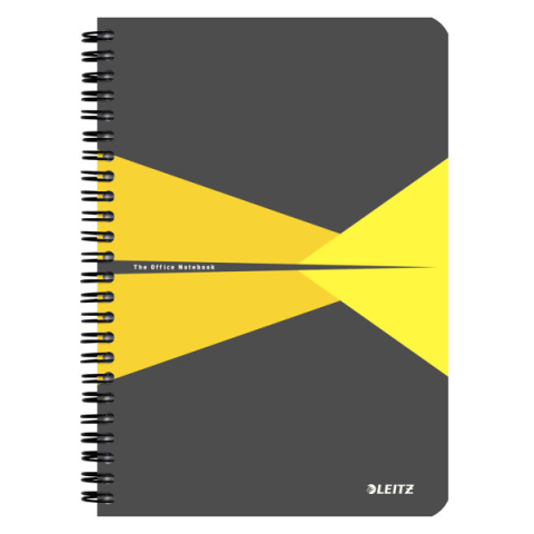 Spirálfüzet, A5, vonalas, 90 lap, laminált karton borító, LEITZ "Office", szürke-sárga