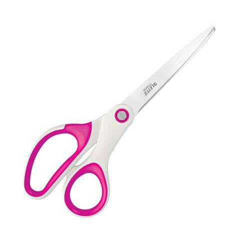 Olló, irodai, 20,5 cm, LEITZ Wow Titán, rózsaszín (E53192023) - prémium minőségű, titán bevonatú, rozsdamentes acélból készült irodai olló - kényelmes használatot biztosító, ergonomikus markolat kettős színkombinációban - a titán bevonat tartós haszn
