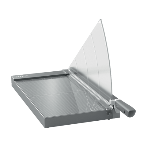 A Leitz Precision Office Pro A3 papírvágó tökéletes általános irodai használatra - papír, címkék, fólia, fényképek, laminált anyagok és kartonlap vágásához. Ez a nagy teljesítményű és robusztus papírvágó könnyedén, gyorsan és precízen vág akár 25 A3-as (80 g/m2) lapot is. Egyedülálló EdgeGlow technológiával, amely megvilágítja a vágás helyét a jobb láthatóság és a maximális pontosság érdekében. Az átlátszó, kézi papírleszorító biztosan rö