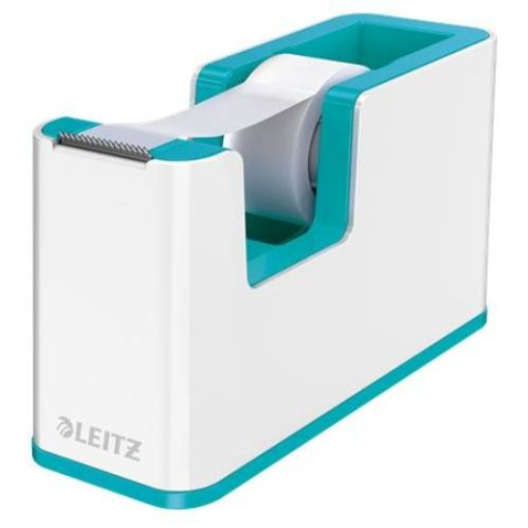 Ragasztószalag-adagoló, asztali, feltöltött, LEITZ Wow, fehér-jégkék (E53641051) - szembetűnő, prémium minőségű, kettős színhatású Leitz ragasztószalag - adagoló fényes felülettel - tökéletesen illik a Leitz WOW termékcsalád többi termékéhez - moder