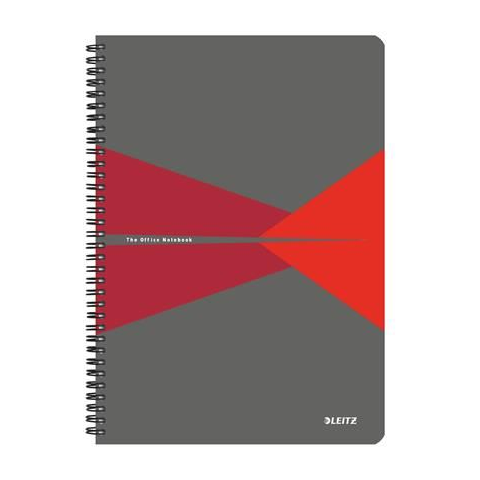 1 kép Leitz spirálfüzet, A4, vonalas, 90 lap, "Office", szürke-piros (E44960025) (E44960025)