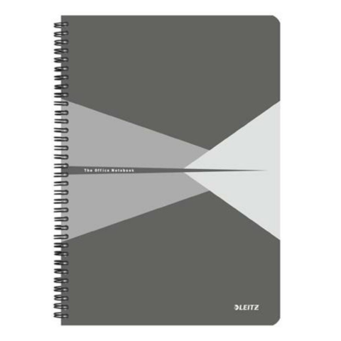 Spirálfüzet, A4, vonalas, 90 lap, PP borító, LEITZ Office, szürke (E44960085) Kiváló minőségű jegyzetfüzet mindennapos használatra. -az extra erős PP borító tökéletes mobil írófelület biztosít -a fém spirálkötésnek köszönhetően a borító 360°-ban kih