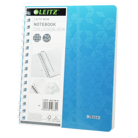 1 kép Leitz Spirálfüzet A5, 80lap kockás Leitz Wow jégkék