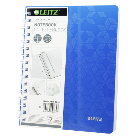 1 kép Leitz Spirálfüzet A5, 80lap kockás Leitz Wow kék