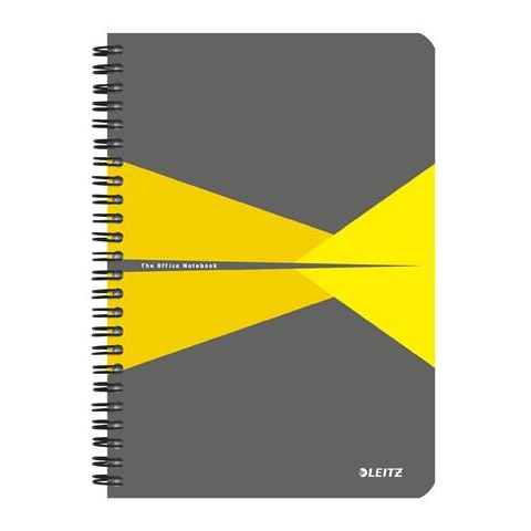1 kép Leitz spirálfüzet, A5, vonalas, 90 lap, "Office", szürke-sárga (E44990015) (E44990015)