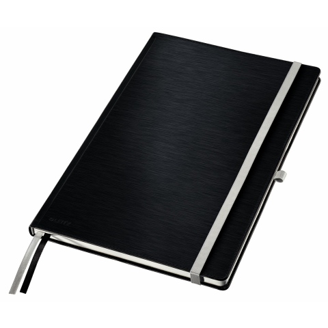 Jegyzetfüzet, A4, vonalas, 80 lap, keményfedeles, LEITZ "Style", szaténfekete