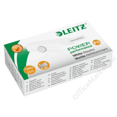 Tűzőkapocs, 24/6, LEITZ P3, fehér (E55540000) - fehér színű tűzőkapocs, mely a fénymásolás során láthatatlan marad - 24/6 kapocsméret. Leitz tűzőgépekhez ajánlott az optimális teljesítmény érdekében - 10 év garancia a Leitz tűzőgépekre Leitz tűzőkapocs