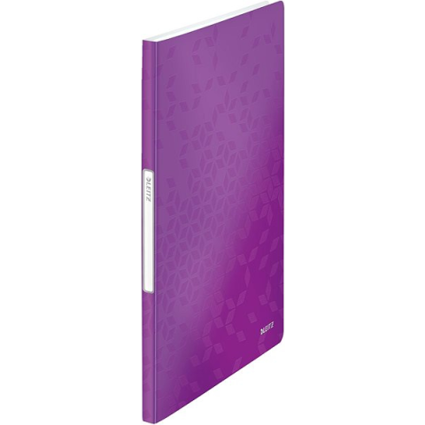 Irattartó mappa A4 - műanyag, katalóguskönyv, zseb belül, 20 rekesz, 40 lap befogadására képes, gerinc címke, nem zárható, lila kivitel, méretei 31 × 23,1 cm (ma × szé), gerinc szélessége 1,3 cm Do you want your documents to be nice and tidy? The LEITZ WOW purple file folders can help you organise important documents, contracts, presentation materials and much more. The product is suitable fo
