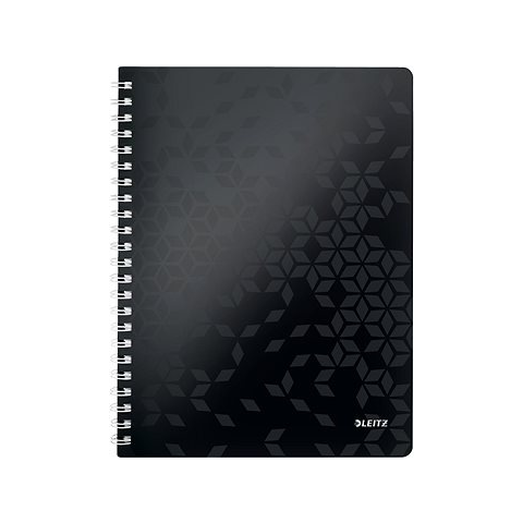 Jegyzetfüzet - A4 formátum, 80 lapos, vonalas papír, kemény kötés, polipropilén borítóval, gyűrűs gerinccel, mikroperforált lapok, fekete kivitel During the course of a day, thousands of thoughts run through our heads. Record everything important in this Leitz WOW A4, Lined, Black Notebook with A4 format. It is covered with a hard binding, so y