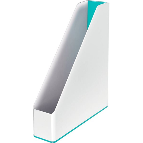 Iratpapucs - A4 és A5 formátumhoz, elhelyezése asztalra, műanyag, laminált felület, mérete 272 × 73 × 318 mm (Ma×Sz×Mé) Leitz WOW fehér / jégkék iratpapucs alapvető jellemzői Eme Leitz iratpapucs segítségével hatékonyan rendszerezhetjük a nyomtatott anyagokat Úgy tervezték, hogy kényelmesen elférjen az asztalon vagy má