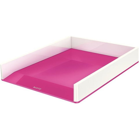 Irattartó tálca - egymásra rakható, műanyag, A4 formátum, méretei 4,9 × 26,7 × 33,6 cm (ma × szé × mé), rózsaszín kivitel, tömege 0,38 kg A remek Leitz WOW fehér / rózsaszín termék legfontosabb előnyei A hasznos, műanyag anyagú Leitz irattálca egy praktikus rekesszel lett tervezve, amely alkalmas A4 formátumú dokumentumok rendezéséhez H
