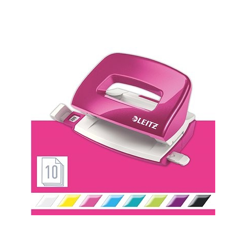 Papírlyukasztó - kapacitás 10 lap, 2 nyílás, nyílás átmérője 5.5mm, két nyílás közötti távolság 80mm, formátum: A4, A5, A6, Nem szabványos, 7cm × 10cm × 8,1cm (ma×szé×mé) Olyan terméket szeretnél beszerezni, amellyel kilyukaszthatod a papírokat? Akkor a praktikus, rózsaszín színkivitelű Leitz papírlyukasztó egy perfekt választás. Irodai és otthoni használatra is alkalm