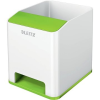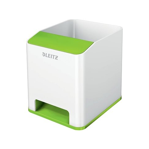 Ceruzatartó - 2 rekesz, anyaga műanyag, méretek 100 × 90 mm (H×Sz), fehér és zöld kivitel Leitz WOW Sound, zöld - legfontosabb tulajdonságok A nagyszerű Leitz ceruza tartó ideális írószerek és gémkapcsok rendezett tárolására 2 darab fakkal Műanyagból gyártották Méretei: 100 × 90 mm (ma x
