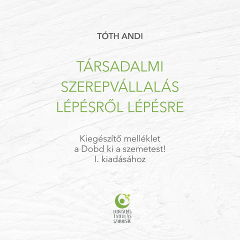 Tóth Andi: Dobd ki a szemetest! Hulladékcsökkentés lépésről lépésre könyve a II. kiadásban egy teljesen új fejezettel bővül: Társadalmi szerepvállalás lépésről lépésre. Andi a tőle megszokott gyakorlatias módon saját tapasztalatait osztja meg olvasóival.