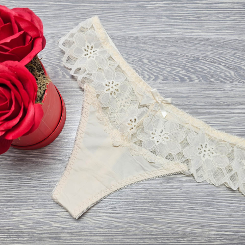 1 kép Lemila Női csipkés selyem tanga M, Ecru
