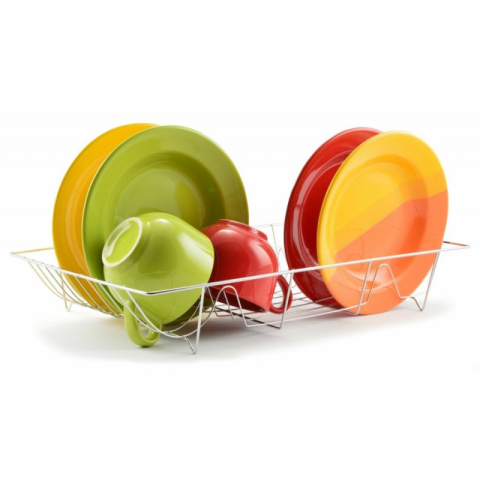 Szárítsd konyhai eszközeidet praktikus edényszárítónkkal! A felső polc alkalmas poharak, tányérok és evőeszközök lecsöpögtetésére. Az alsó tárolóban pedig elhelyezheted a mosogatószivacsot, törlőrongyot is.