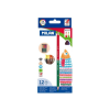 A Milan: kétvégű színes ceruza - 12 db-os egy kiváló minőségű, könnyen hegyezhető színes ceruza szett, amely 24 színben kapható. A háromszögletű kialakításnak köszönhetően kényelmes használatot biztosít. A ceruzák lakkozottak és aranyos robot mintázatúak. A ceruzák bélanyaga homogén és magas pigment tartalmú