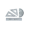 A 4 darabos vonalzó szett tartalmaz egy 20 cm-es egyenes, vonalzót, egy 13 cm-es 60 °-os, valamint 9 cm-es 45°-os vonalzót és egy 10 cm-es szögmérőt is.