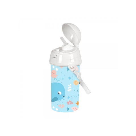 A praktikus szívószállal könnyebbé válik a folyadékfogyasztás. Kialakítása miatt könnyen kinyitható és használható, ideális választás gyermekeknek is. Engedd, hogy a tenger hangulata végig kísérjen az utadon. Rendelkezik egy vállszíjjal is. Fontos megemlíteni, hogy újrahasznosítható.