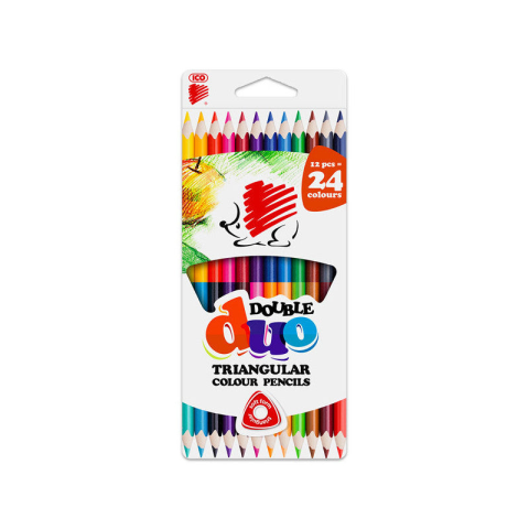 Az ICO színes ceruza készlet tökéletes választás iskolai, óvodai vagy otthoni projektekhez. Háromszög alakú kialakításának köszönhetően kényelmes fogást biztosítanak. A készletben 12 darab ceruza található, azonban két vége van, így 24 féle szín található a csomagban. Rendkívül tartós és minőségi mű