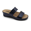 Leon Női Papucs 2020/T001. Színe: kék Dekoratív női nappabőr ( nagyon puha felsőrész ) papucs, műanyag csúszásmentes talppal. A felsőrész mindkét pántja tépőzárral szabályozható. Az anatómiai kialakítású, puha bőr talpbetét kivehető, így bármikor tisztítható és cserélhető. Ajánlott: mindennapos utcai használatra, otthonra vagy munkahelyre ( több órás, szaladgálós munka alatt sem fárad el a láb ). 2020/T001