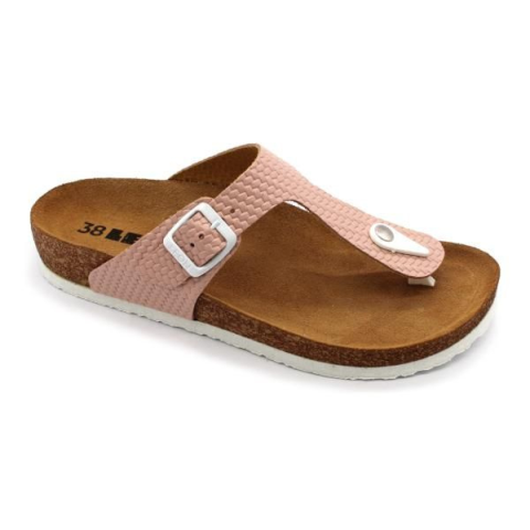 Leon Női Papucs 4080/T091. Színe: rose Női bőr, láb ujj köztes papucs, műanyag csúszásgátlós talppal. A szíj bősége csattal szabályozható. A talp anatómiai kialakítású parafa, puha velúrbőr talpbetéttel és csúszásmentes habszivacs alsó résszel. Ajánlott minden napos otthoni vagy utcai használatra, könnyű nyári sétára ( több órás gyaloglás után sem fárad el a láb ). 4080/T091