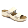 Leon Női Papucs 904/T012. Színe: bézsNői bőr nyitott papucs, műanyag csúszásgátlós talppal. Mind a két szíj tépőzárral szabályozható. A talpbetét puha zselés, bőr. Ajánlott: mindennapos használatra, otthonra , utcai viseletre vagy munkahelyre ( több órás, szaladgálós munka alatt sem fárad el a láb ). 904/T012