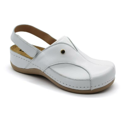 Női bőr klumpa/szandál, műanyag csúszásgátlós talppal. A talpbetét puha zselés, bőr. A felsőrész két oldalán és legfelül elasztikus textil betét található, melynek köszönhetően nagyon kényelmes viseletet biztosít, kisebb fokú lábdeformitás ( bütyök ) esetén is. Ajánlott: mindennapos utcai használatra, otthonra vagy munkahelyre ( több órás, szaladgálós munka alatt sem fárad el a láb ).méret:39