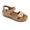 Női nappabőr (nagyon puha felsőrész) szandál, műanyag csúszásgátlós talppal. Mind a két szíj tépőzárral szabályozható. A talpbetét puha zselés, bőr. Ajánlott minden napos utcai használatra, könnyű nyári sétára ( több órás gyaloglás után sem fárad el a láb ).