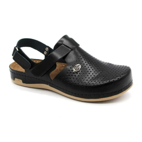 Női bőr klumpa/szandál, műanyag csúszásgátlós talppal. Oldalt és hátul tépőzárral szabályozható. A talpbetét puha zselés, bőr. A természetes anyagnak és a felsőrész lyukacsosságának köszönhetően , jól szellőzik. Ajánlott mindennapos használatra: utcára vagy munkahelyre ( több órás, szaladgálós munka alatt sem fárad el a láb ). Ez a termékünk rendelkezik minőségi, munkavédelmi bevizsgálással.méret:37