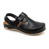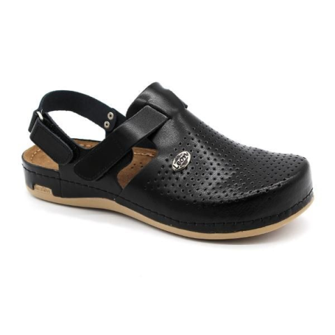Leon Női Szandál 951/T007. Színe: feketeNői bőr klumpa/szandál, műanyag csúszásgátlós talppal. Oldalt és hátul tépőzárral szabályozható. A talpbetét puha zselés, bőr. A természetes anyagnak és a felsőrész lyukacsosságának köszönhetően , jól szellőzik. Ajánlott mindennapos használatra: utcára vagy munkahelyre ( több órás, szaladgálós munka alatt sem fárad el a láb ). Ez a termékünk rendelkezik minőségi, munkavéd