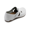 Női bőr cipő, a talpán műanyag csúszásgátló betéttel. A könnyebb felhúzást és a kényelmes bőséget tépőzár biztosítja. A talpbetét puha zselés, bőr. A természetes anyagnak és a lyukacsos felsőrésznek köszönhetően , jól szellőzik. Munkavégzéshez ajánljuk egészségügyben, konyhán, szociális intézményekben, stb. dolgozó hölgyek részére ( több órás, megfeszített munka alatt sem fárad el a láb ).