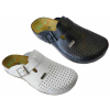 Férfi bőr klumpa, műanyag csúszásgátlós talppal. Oldalt fém csat található, amellyel szabályozni lehet a bőséget. A természetes anyagnak és a felsőrész lyukacsosságának köszönhetően, jól szellőzik. Ajánlott: mindennapos utcai használatra, otthonra vagy mu
