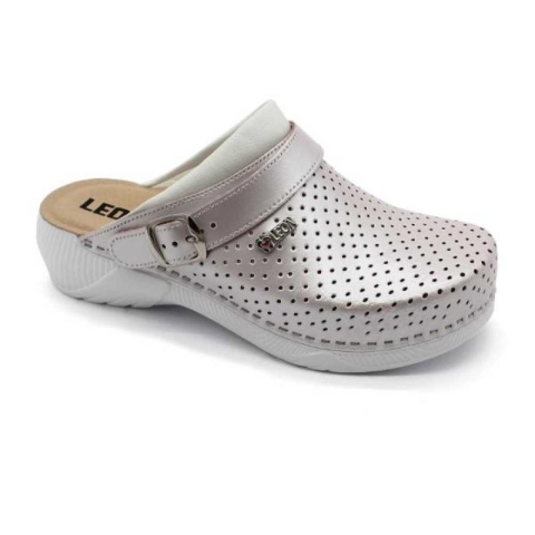 Női bőr klumpa, műanyag, ruganyos talppal, amely az alsó részén csúszásgátlóval rendelkezik. A talpbetét puha, szivacsos bőr. A természetes anyagnak és a felsőrész lyukacsosságának köszönhetően jól szellőzik. Ajánlott: mindennapos utcai használatra, otthonra vagy munkahelyre ( több órás, szaladgálós munka alatt sem fárad el a láb ).