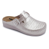 Leon Női Papucs 5001/T071. Színe: perla Dekoratív női klumpa, műanyag csúszásmentes talppal. A felsőrész bősége csattal szabályozható, természetes anyagnak és a lyukacsosságának köszönhetően, jól szellőzik. Az anatómiai kialakítású, puha bőr talpbetét kivehető, így bármikor tisztítható és cserélhető. Ajánlott: mindennapos utcai használatra, otthonra vagy munkahelyre ( több órás, szaladgálós munka alatt sem fárad