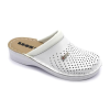 Leon Női Papucs V262/T013. Színe: fehér Dekoratív női bőr klumpa, műanyag csúszásgátlós talppal. A talpbetét puha zselés, bőr. A természetes anyagnak köszönhetően jól szellőzik. Ajánlott: mindennapos utcai használatra, otthonra vagy munkahelyre ( több órás, szaladgálós munka alatt sem fárad el a láb ). V262/T013