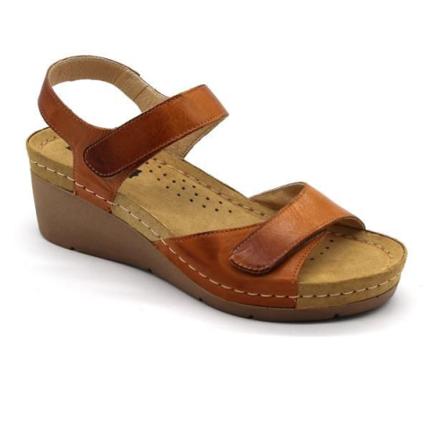 Leon Női Szandál 1041/T003. Színe: barnaKényelmes női bőr szandál, műanyag talppal. Mind a két szíj tépőzárral szabályozható A talpbetét puha, zselés, bőr. Ajánlott minden napos utcai használatra, könnyű nyári sétára ( több órás gyaloglás után sem fárad el a láb ). 1041/T003