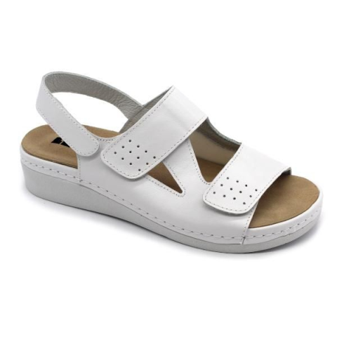 Leon Női Szandál 5020/T013. Színe: fehér Dekoratív női nappabőr ( nagyon puha felsőrész ) szandál, műanyag csúszásmentes talppal. A felsőrész bősége tépőzárral szabályozható. Az anatómiai kialakítású, puha bőr talpbetét kivehető, így bármikor tisztítható és cserélhető. Ajánlott: mindennapos utcai használatra, otthonra vagy munkahelyre ( több órás, szaladgálós munka alatt sem fárad el a láb ). 5020/T013