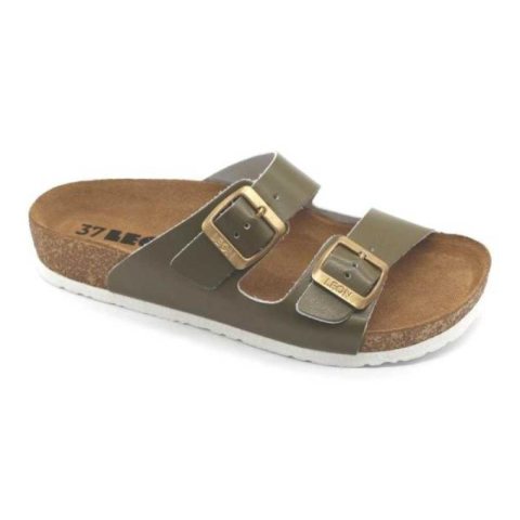 Női nyitott, bőr papucs. A felsőrész, a csatoknak köszönhetően, a lábhoz igazítható. A talp anatómiai kialakítású parafa, puha velúrbőr talpbetéttel és csúszásmentes habszivacs alsó résszel. Ajánlott minden napos otthoni vagy utcai használatra, könnyű nyári sétára ( több órás gyaloglás után sem fárad el a láb ).