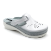 Leon Női Papucs PU156/T013. Színe: fehérDekoratív női bőr klumpa, műanyag talppal. A talpbetét puha, szivacsos bőr. A természetes anyagnak és a felsőrész lyukacsosságának köszönhetően, jól szellőzik. Ajánlott: mindennapos utcai használatra, otthonra vagy munkahelyre ( több órás, szaladgálós munka alatt sem fárad el a láb ). PU156/T013