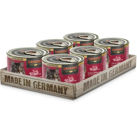 LEONARDO marhahús vaddal és édesburgonyával Superior konzerv macskaeledel.Mivel a házimacska vadon élő fajtársaihoz hasonlóan húsevő, a LEONARDO konzerveledeleinek célja a színhús-minőség nyújtása. Természetes A-és D-vitamin tartalma pedig hozzájárul az egészséges, ragyogó megjelenéshez.Az egyévesnél idősebb, kifejlett macskák részére ezen kívül még több finom ízvilág áll rendelkezésre, amelyeket Ön kedve szerint kombinálhat egymással. Így cicája mi