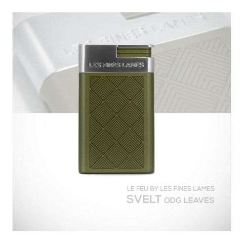 Les Fines Lames szúrólángos zöld színű, halszálka mintás szivaröngyújtó Les Fines Lames logó és felirattal. Az erős szúróláng segítségével, az öngyújtó még a nagy méretű szivarokat is könnyedén meggyújtja. Az alján után tölthető, és itt állítható a láng mérete. Méretek: 6,7 cm x 4 cm x 0,8 cmSúlya: 65 g